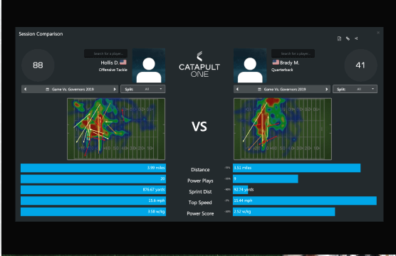 Catapult One tracks 10 core metrics including sprint distance, top speed, power and player load to inform your performance conversations with data and motivate your players to deliver the results.